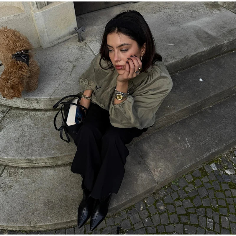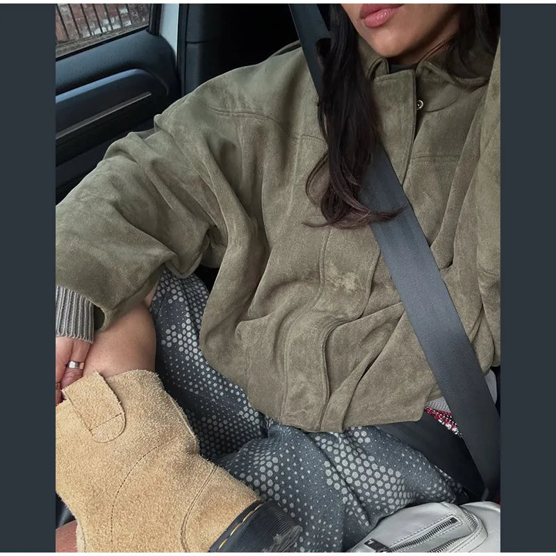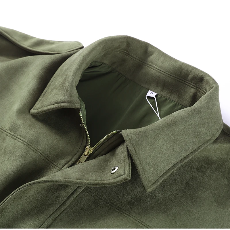 Elegant Green Suede Jackets 2025 Spring Autumn Street PlElegan