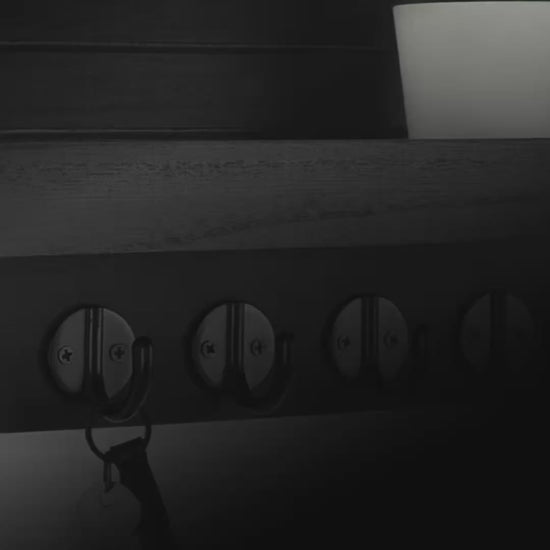 Key Holder for Wall, Decorative Key and Mail Holder with Shelf Has Large Hooks for Bags, Coats, Umbrella – Paulownia Wood Key Hanger with Mounting Hardware (9.8”W x 6.7”H x 4.2”D)